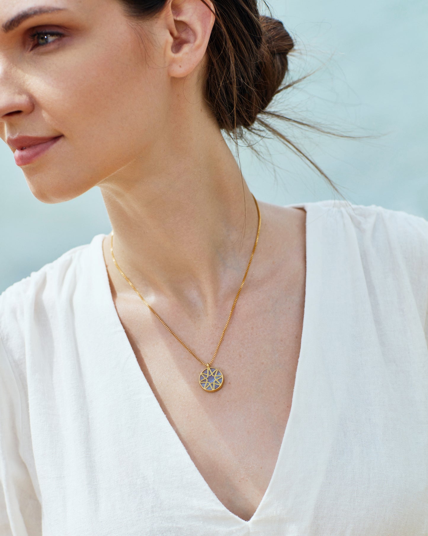 Add Blue Lace Agate Gemstone Necklace - 18K Gold Plated to the cart