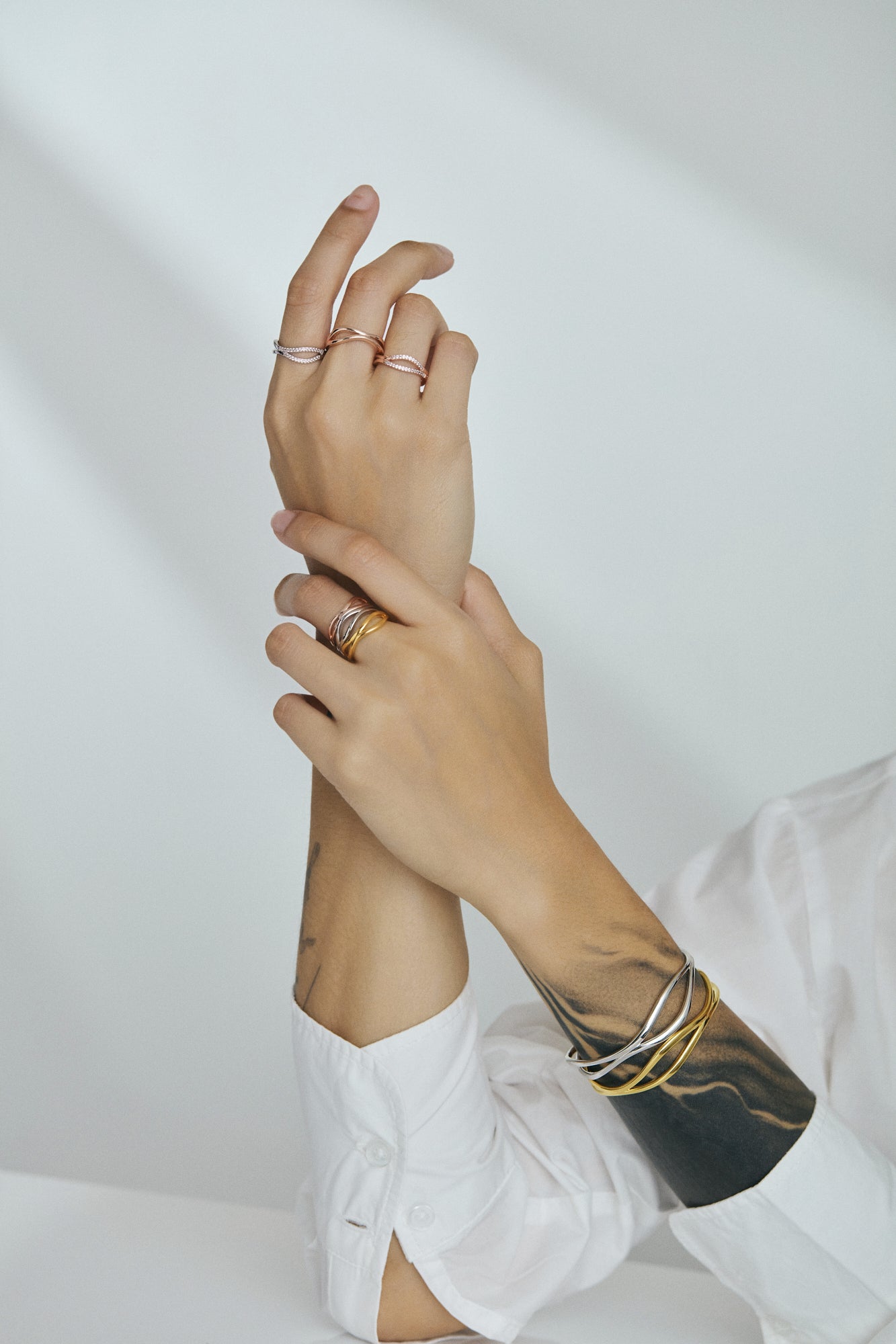 What a beauty she is! Its gentle flowing lines caresses your wrist, your go-to companion for a quick and easy elevation of style.