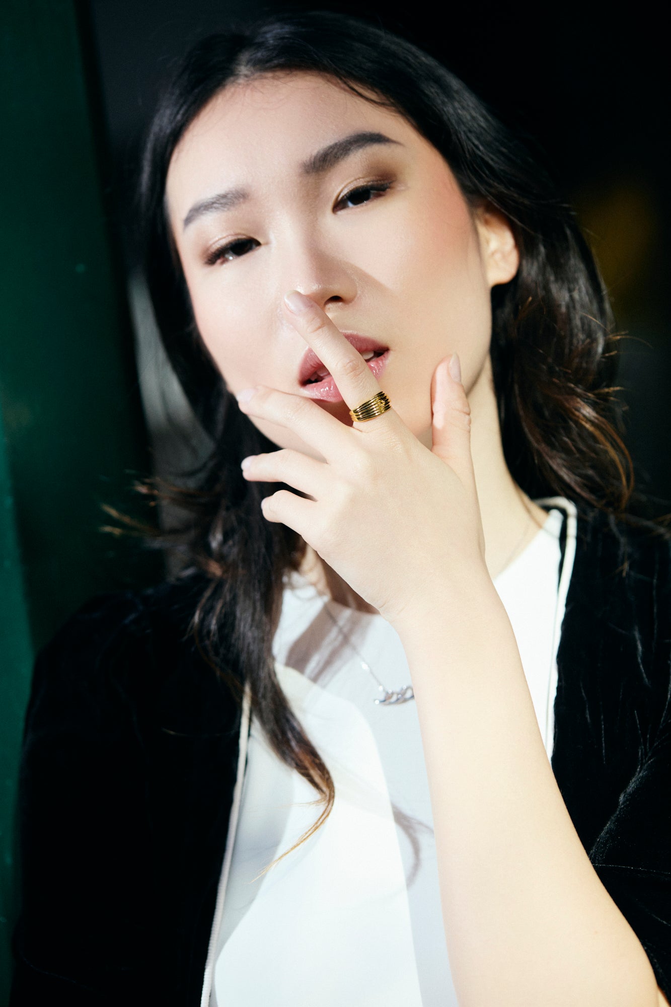 Sterling silver rose gold plated Scribble Bold Ring on model