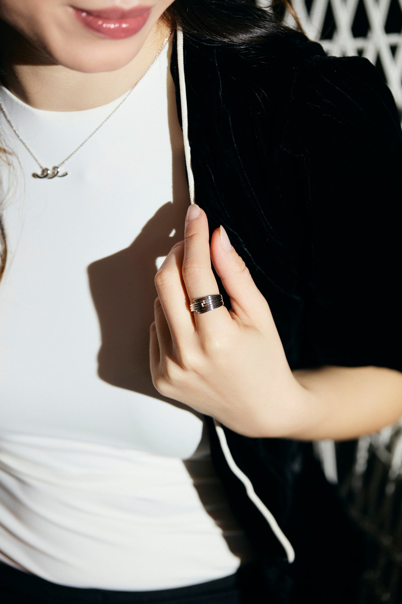 Sterling silver Scribble Bold Ring on model