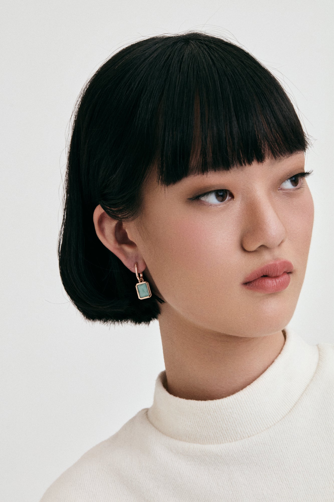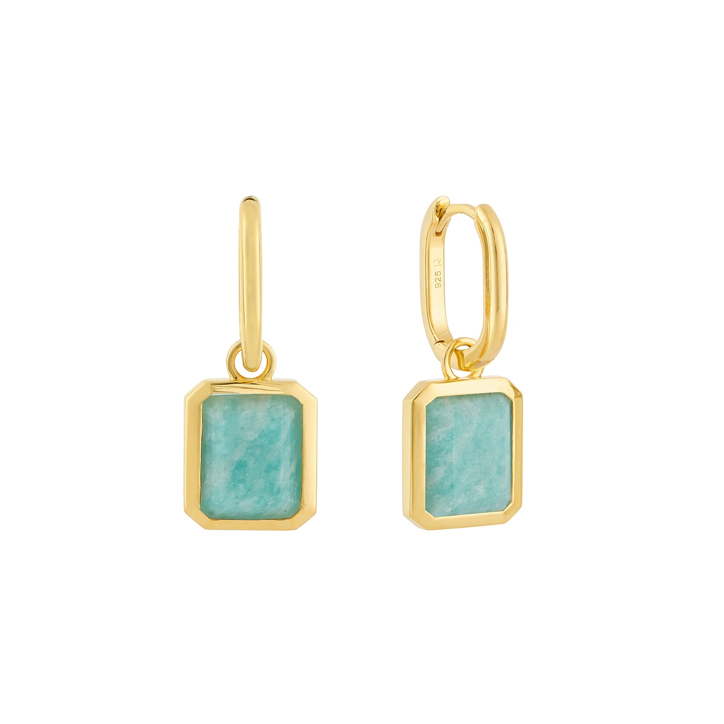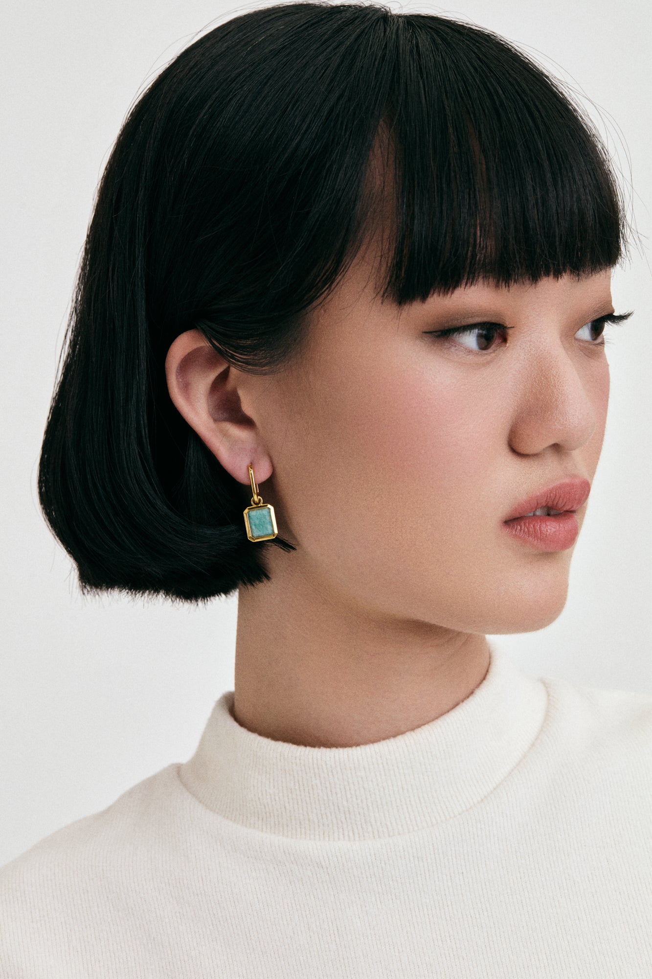 Amazonite Oblong Charm Earrings in Yellow Gold