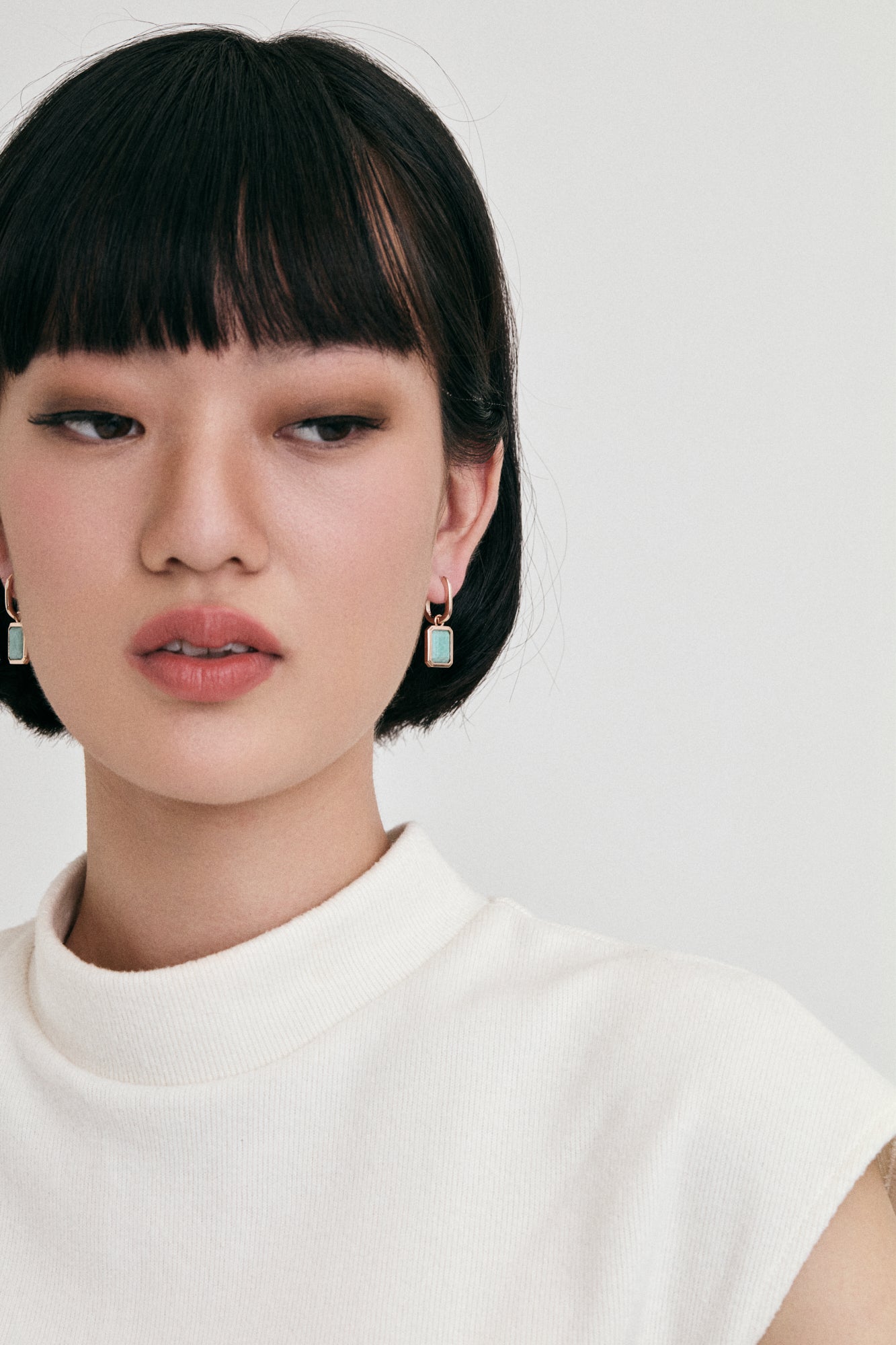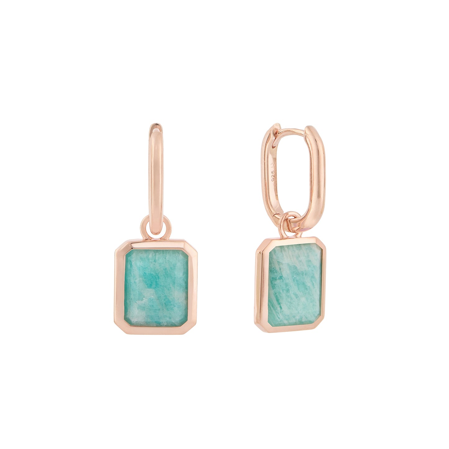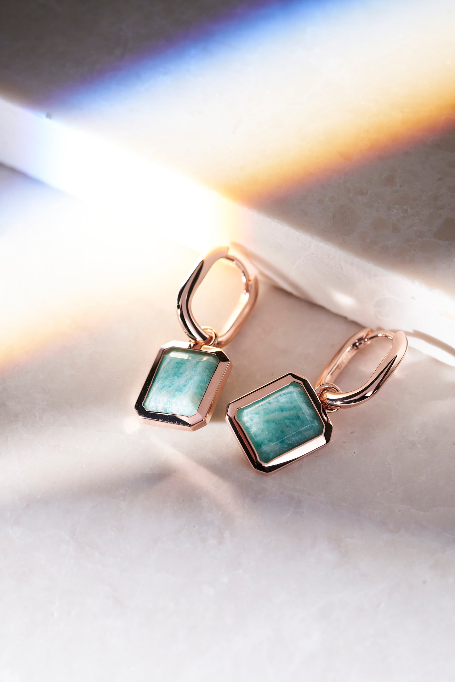 Amazonite Charm Sterling Rose Gold Earrings on model