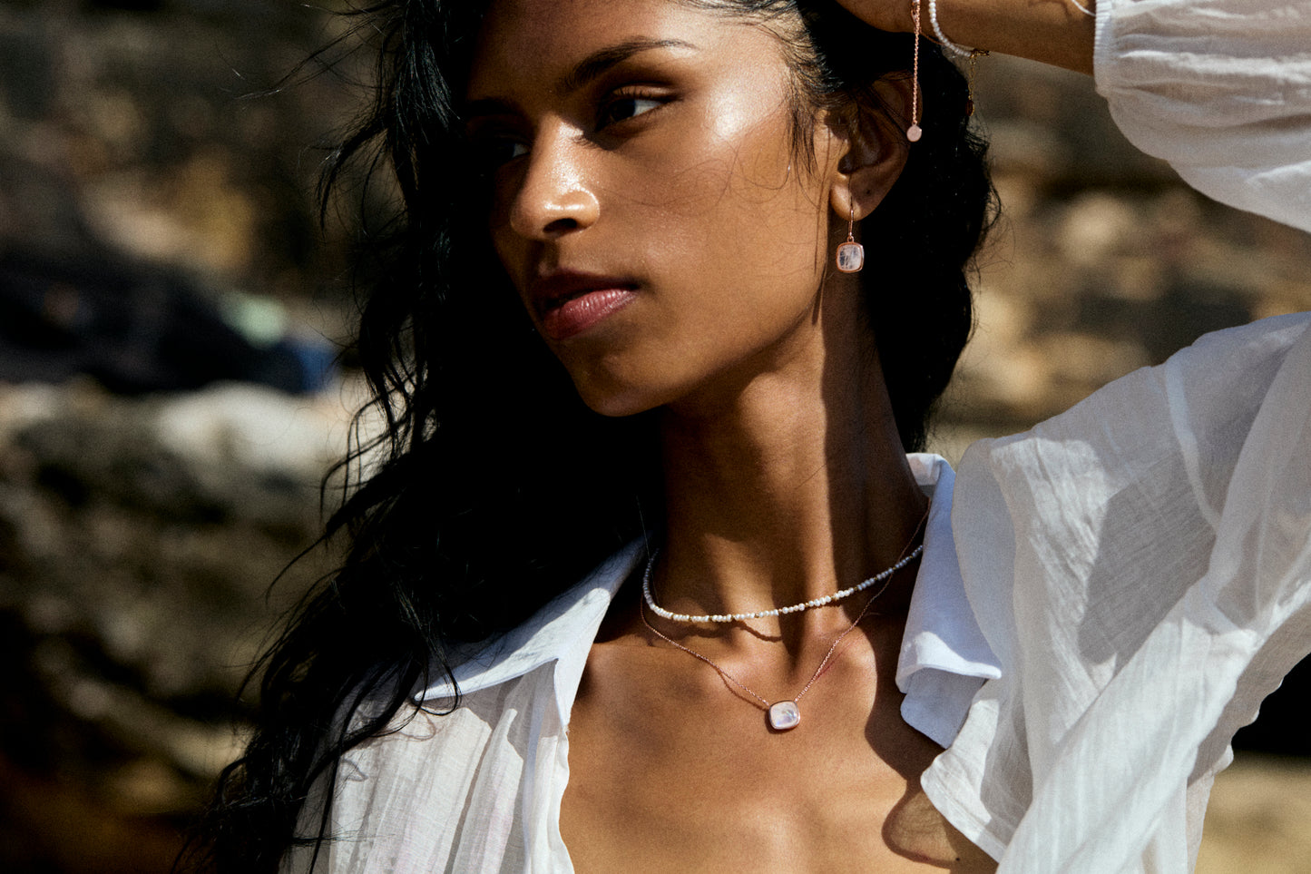 Our Demi-fine collection are made with 925 sterling silver. They are hypoallergenic, free of nickel, lead and cadmium. Each Gold Vermeil piece is electroplated with 2.5 micron of 18K Gold/Rose Gold (5x thicker!) or Rhodium and finished with an additional coating of anti-tarnish for longer lasting wear.