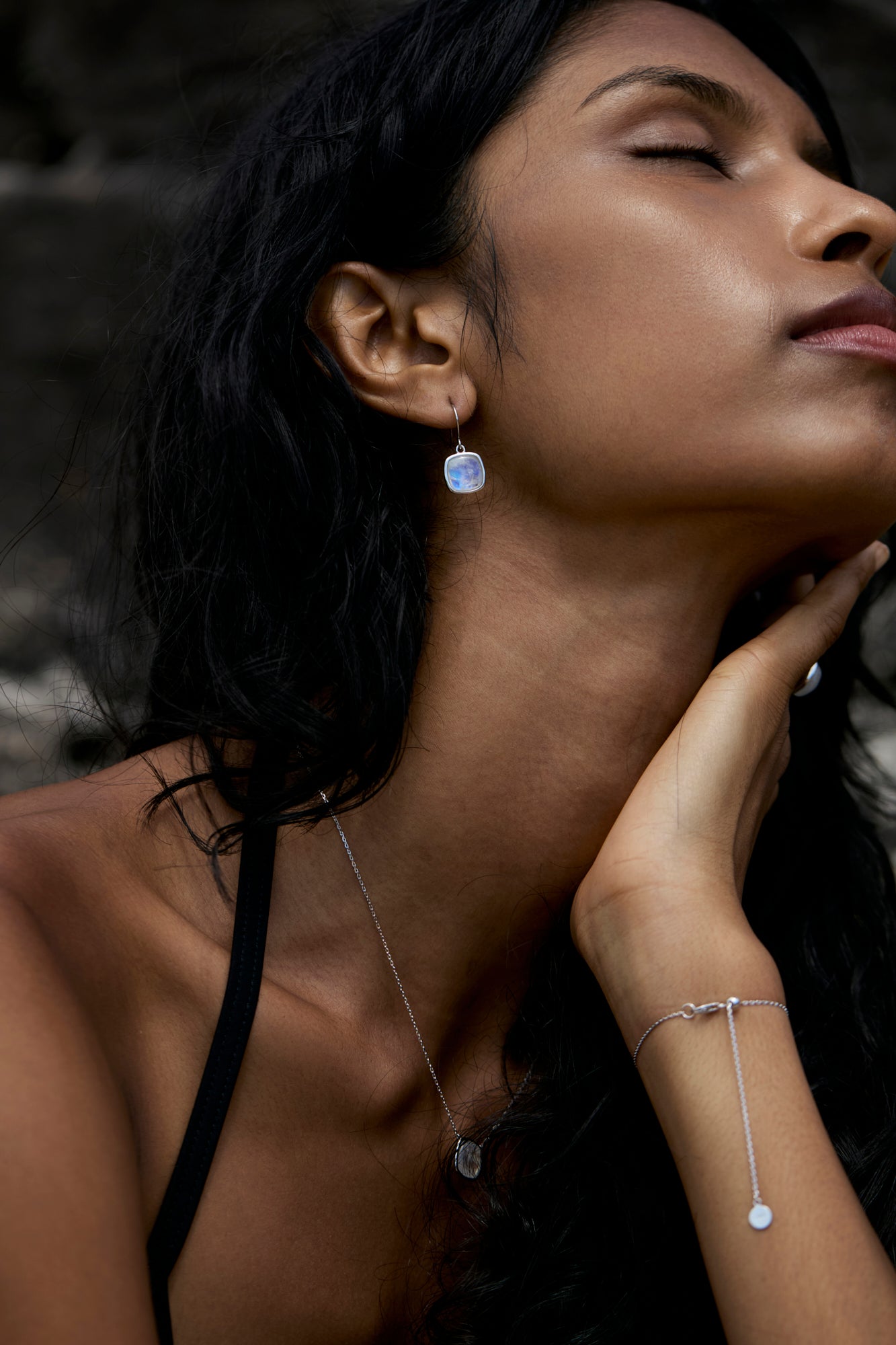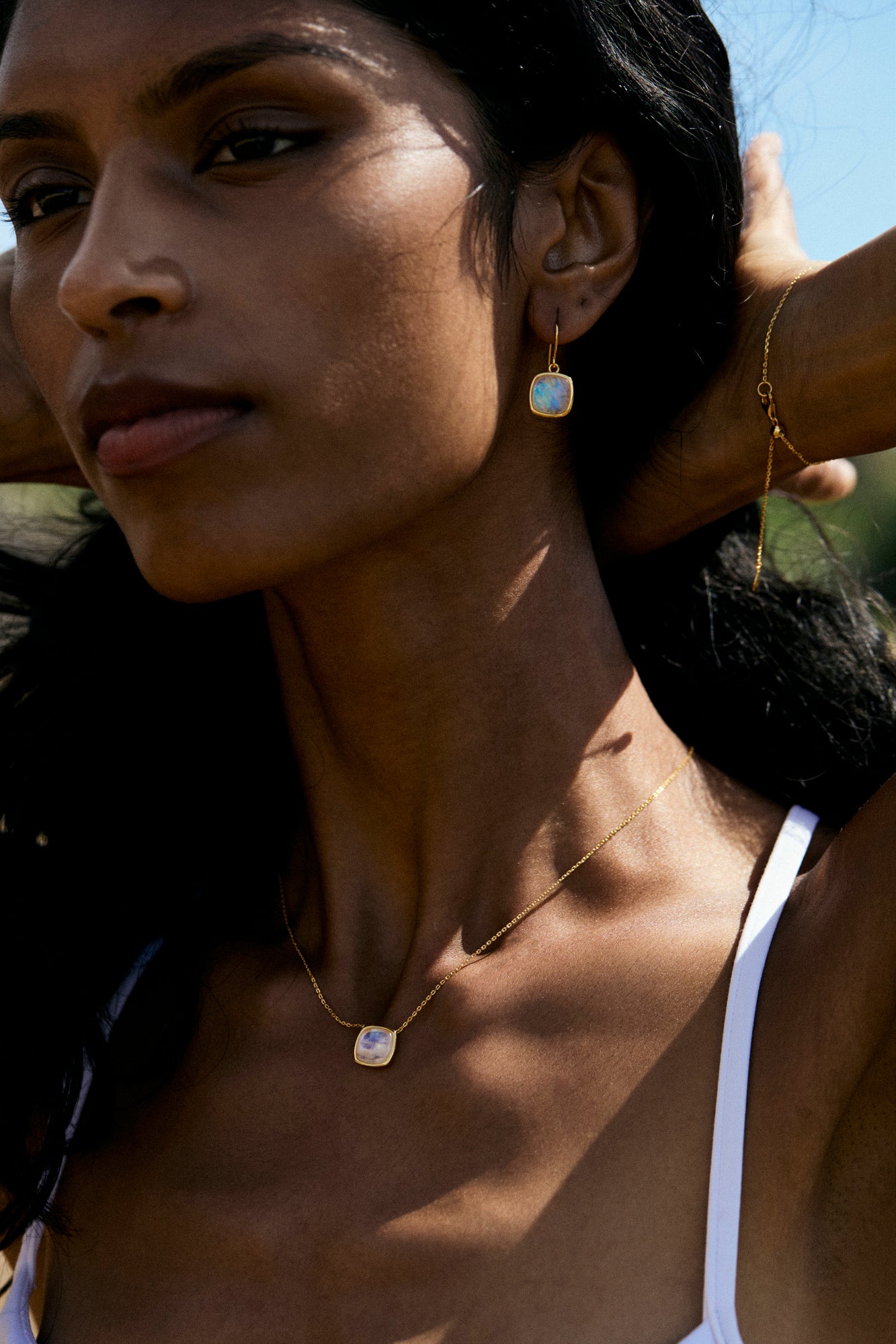 With a bezel setting, the Blue Moonstone Cushion Cabochon Hook Earrings has a contemporary look to it - making this easy for styling.