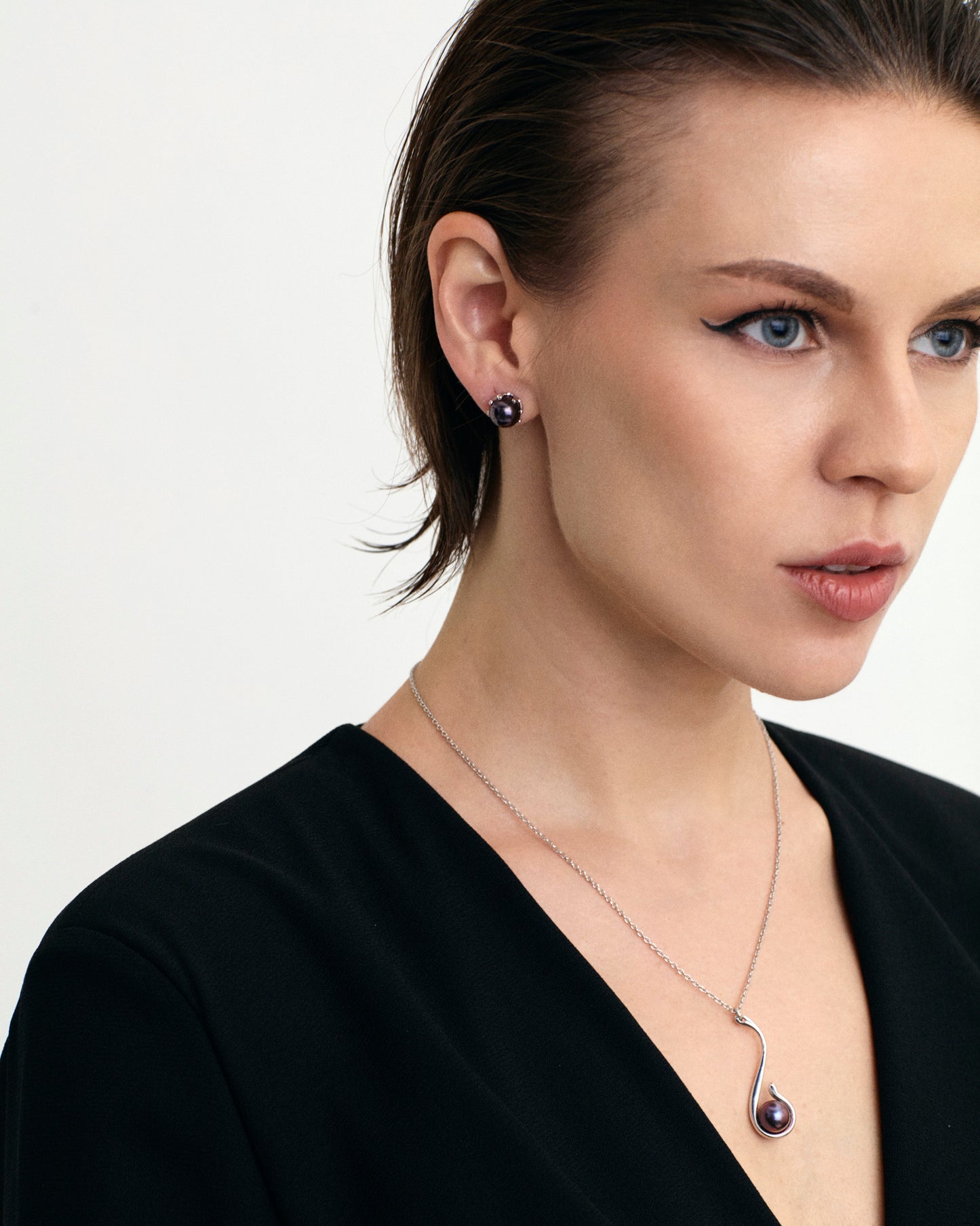 Embrace Black Fresh Water Pearl Stud Earrings - Sterling Silver