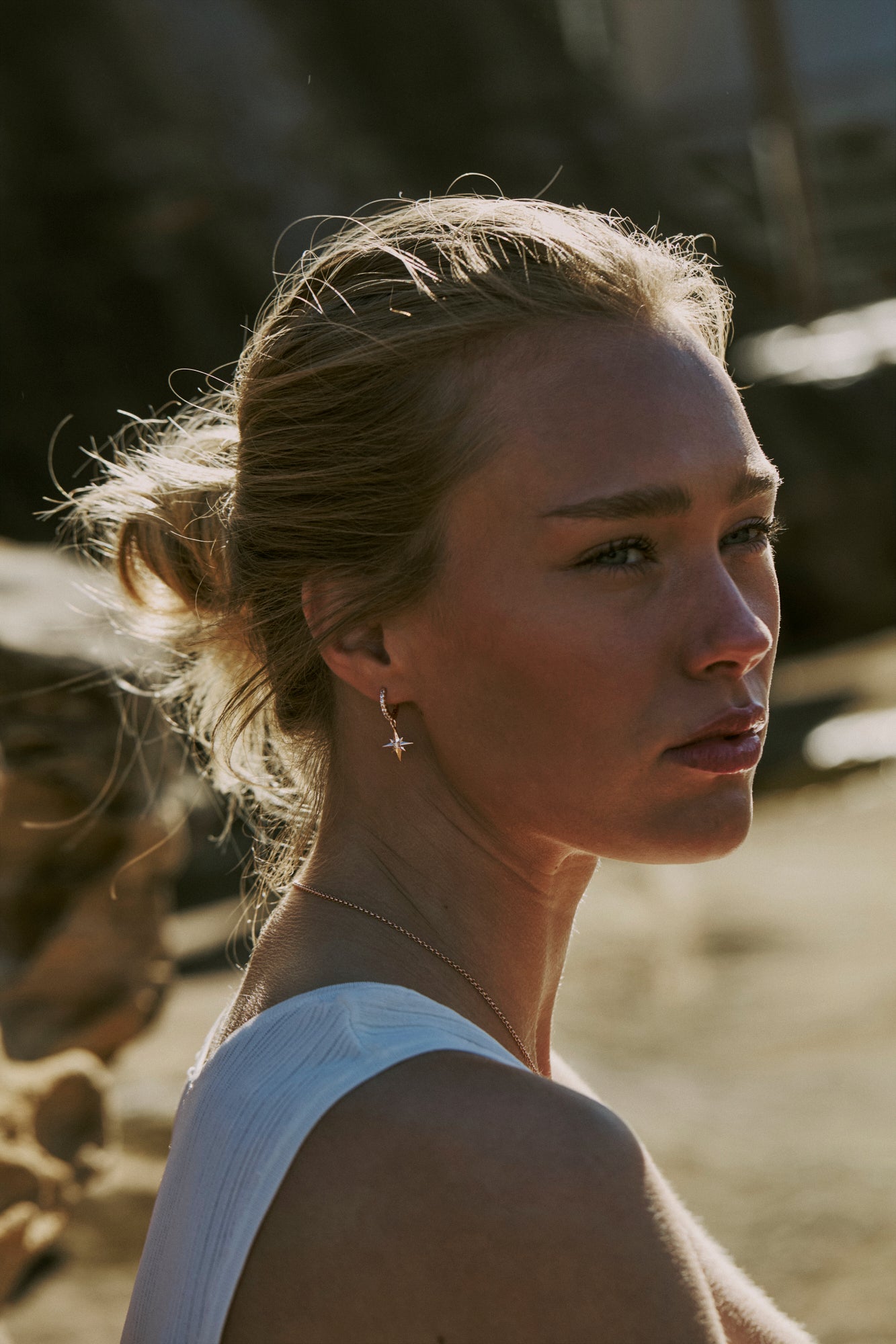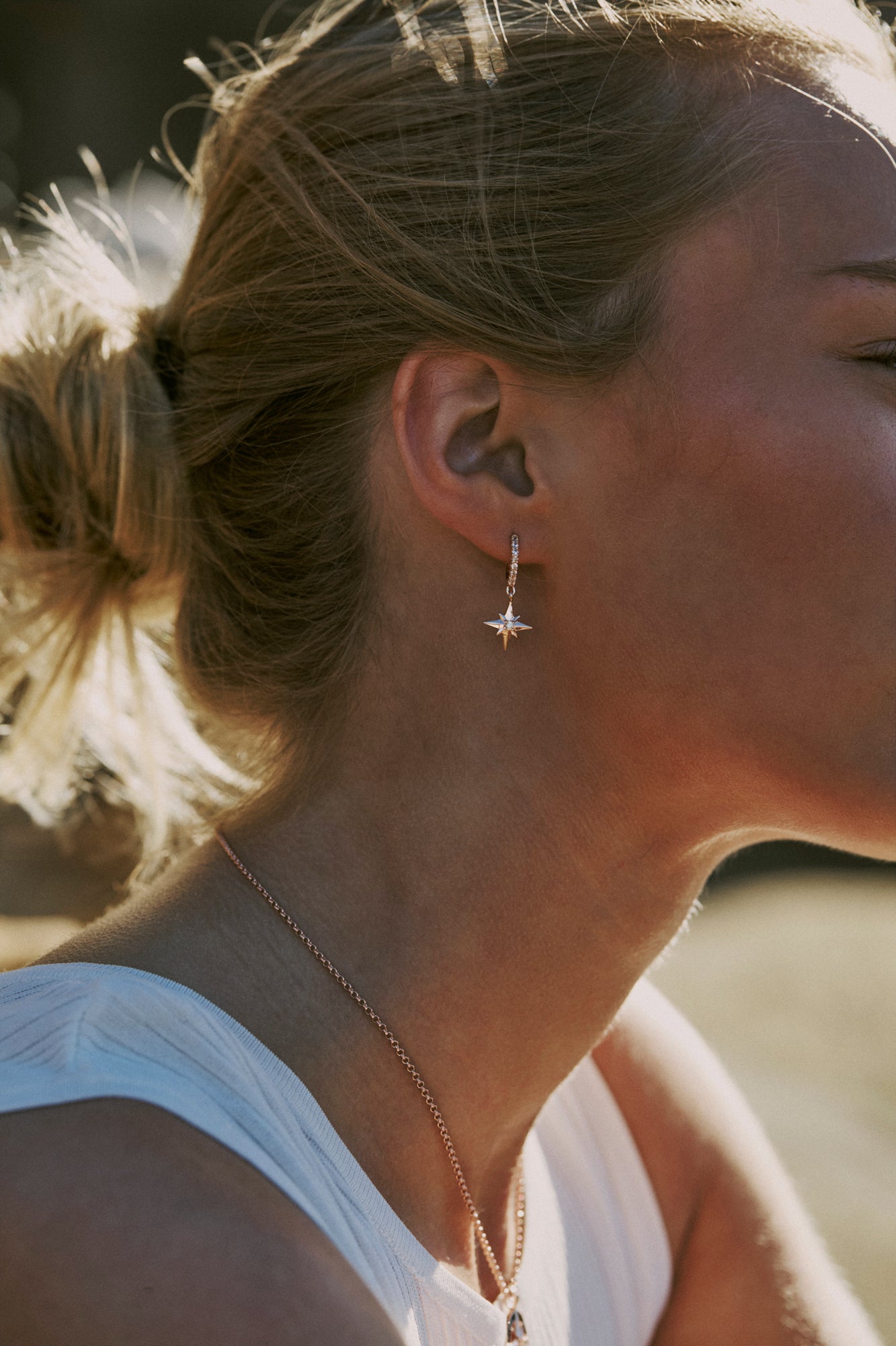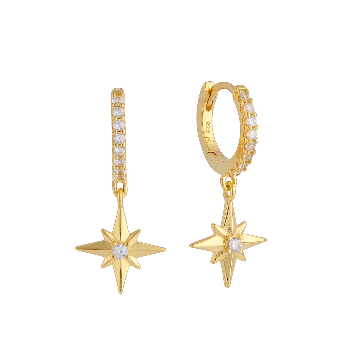 Hope White Zircon North Star Huggie Dangle Earrings