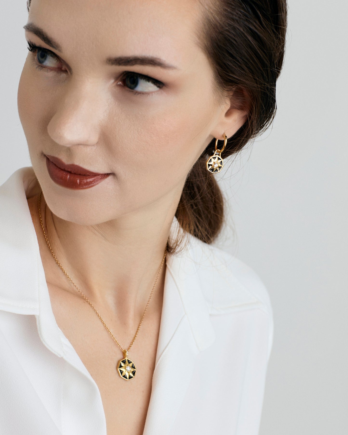 The Hope Earrings feature a pair of elegant hoop earrings that is accompanied by classic black enamelled star motif charms. Stunning white zircons center the piece, shining its light your way. All set in 18K Gold Vermeil for a sophisticated & versatile look.