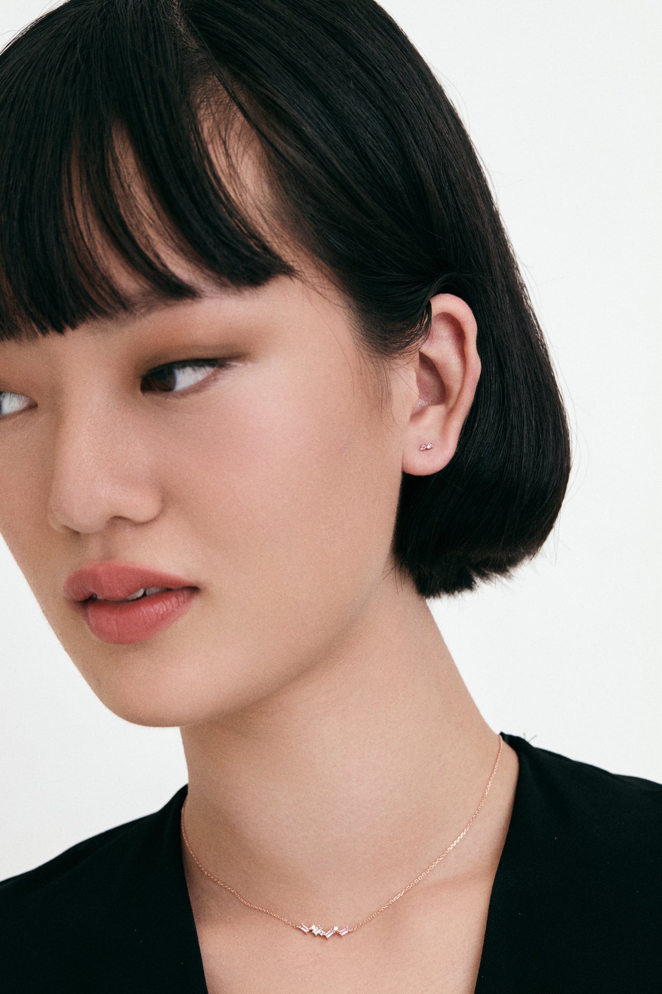 Interstellar 14K Solid Gold Pink Sapphire & Diamond Stud Earrings on model