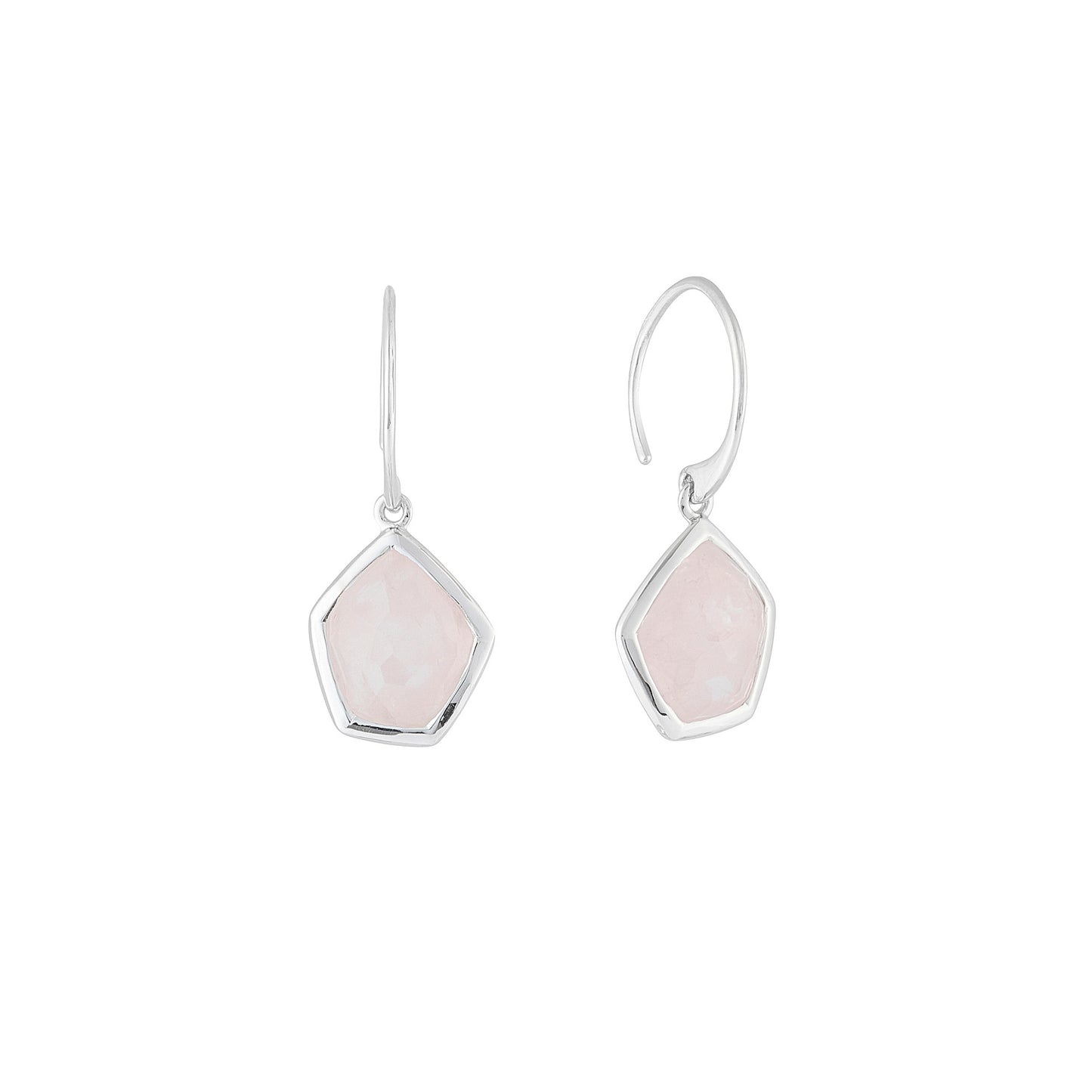 Rose Quartz Faceted Briolette Hook Earrings Sterling Silver
