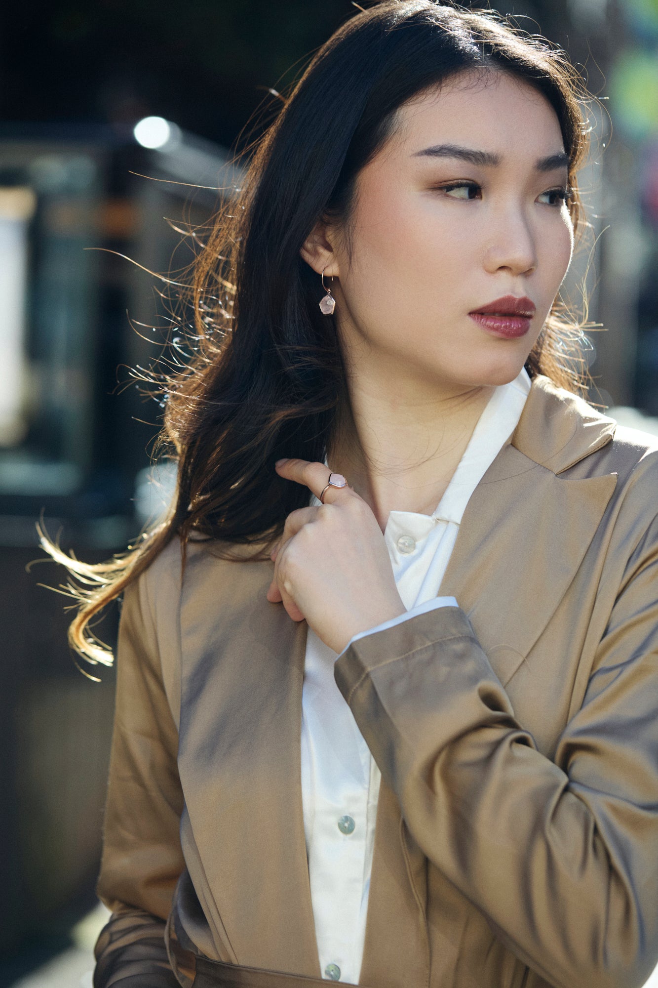 Our Demi-fine collection are made with 925 sterling silver. They are hypoallergenic, free of nickel, lead and cadmium. Each piece is electroplated with 1 micron of 18K Gold,  Rose-gold, or Rhodium and finished with an additional coating of anti-tarnish for longer lasting wear.