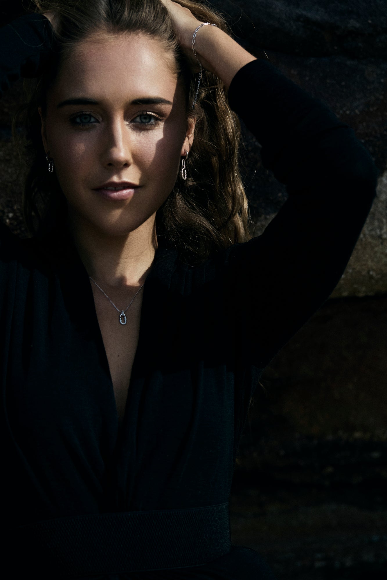 Chains, a symbol of strength. Interlinked and locked - an unbreakable bond between faith and self. A quiet confidence in her so strong that it will shatter the darkest of fears. She was powerful not because she wasn't scared but because she went on so strongly despite the fear. She came out victorious knowing it had been a life-time of mastery to become the woman she is today.