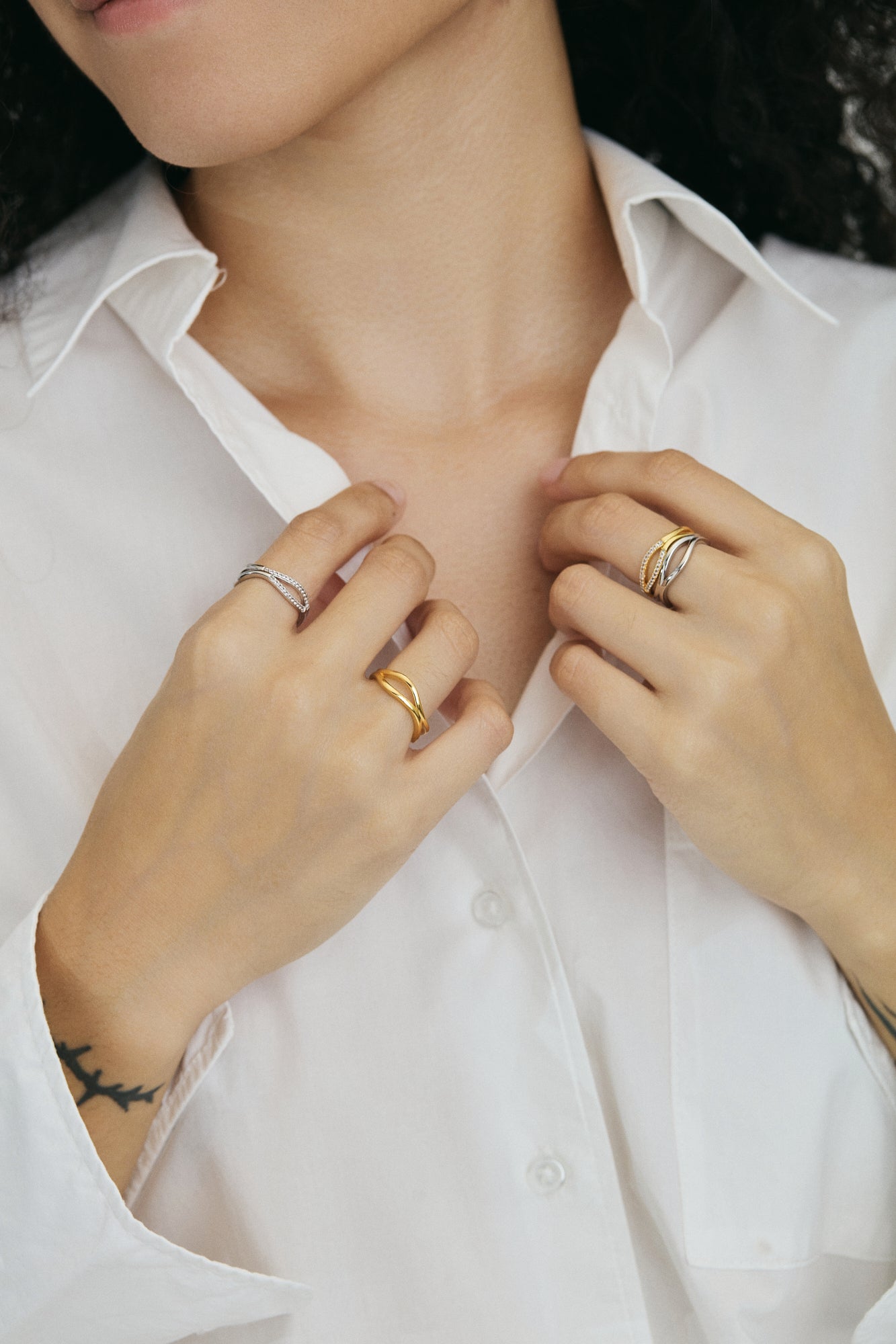 Encrusted with a pave of white topazes, its gentle lines wrap around your finger. Stack your Flow White Topaz Ring with Flow Peace Ring for a quiet statement or wear it on its own.