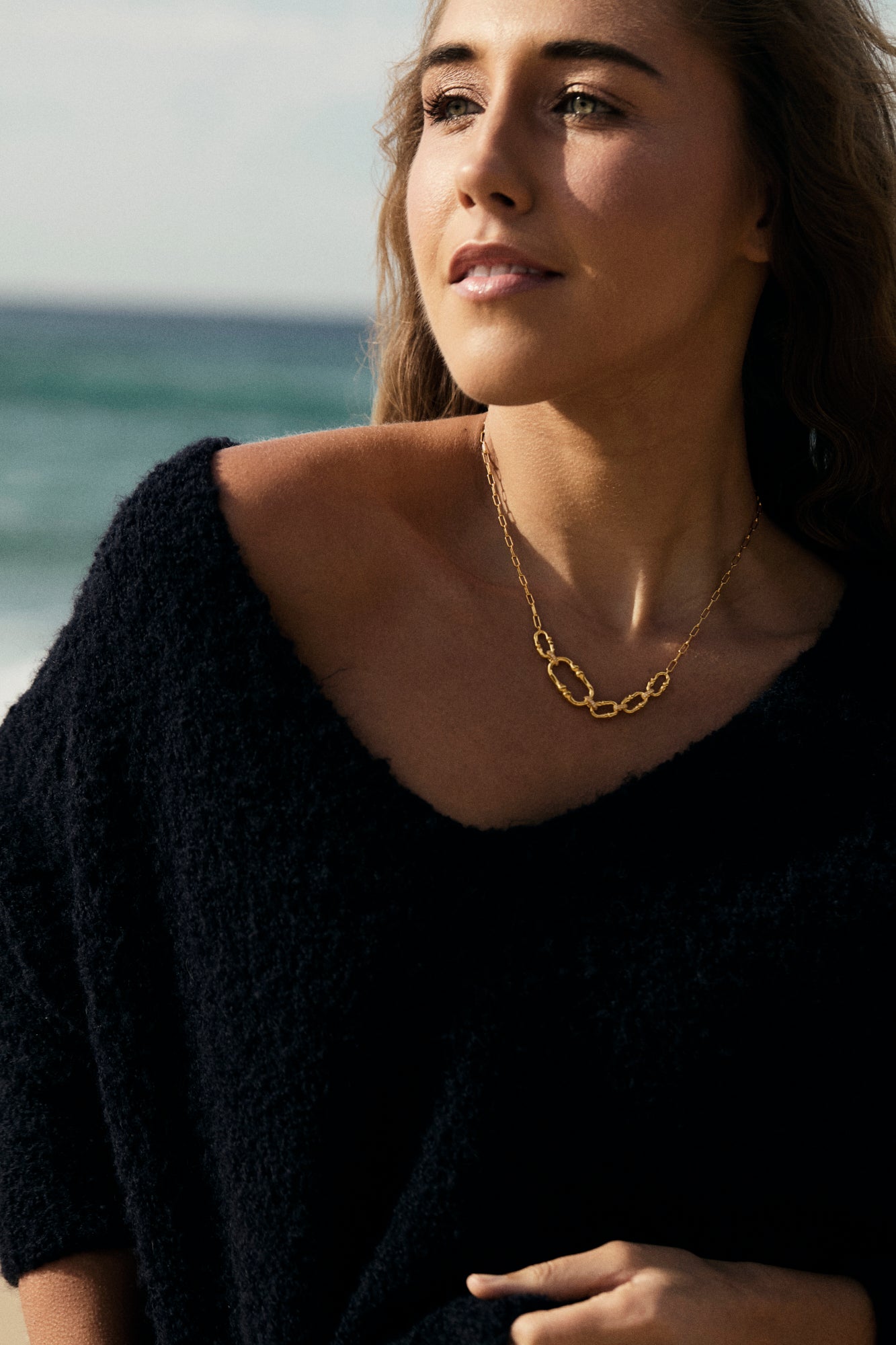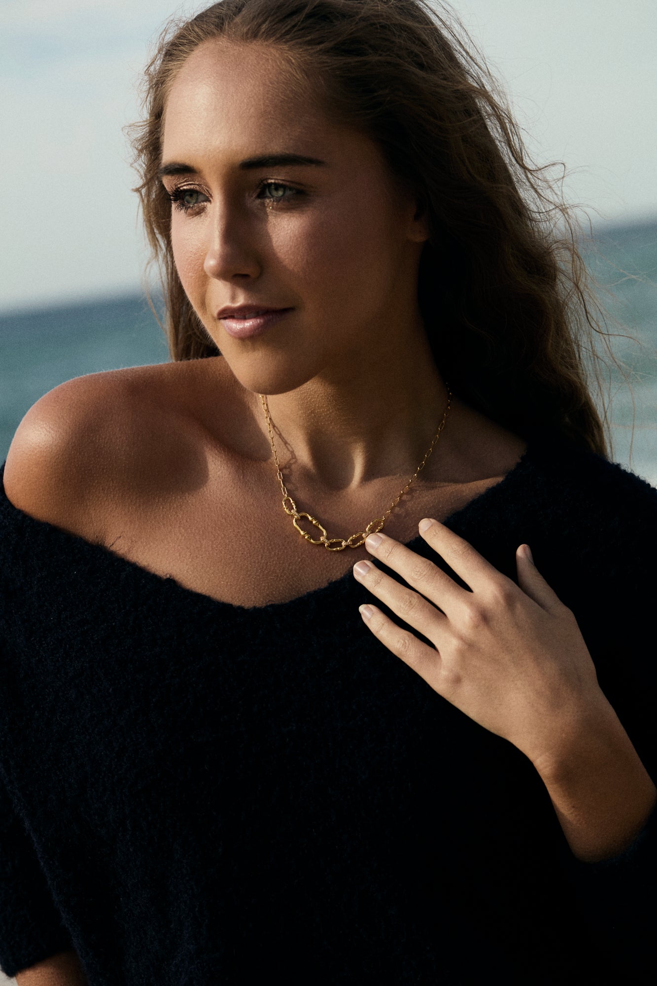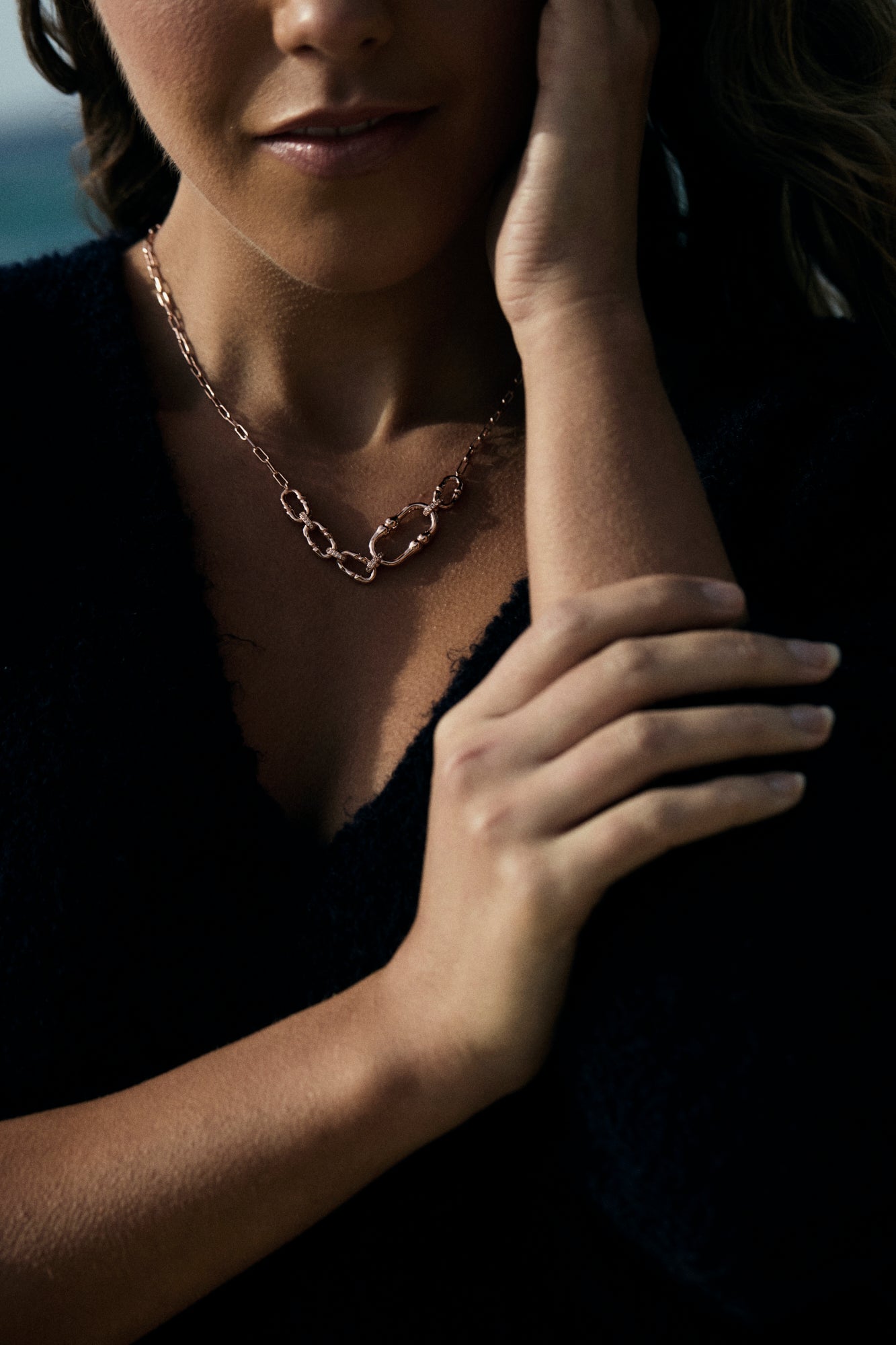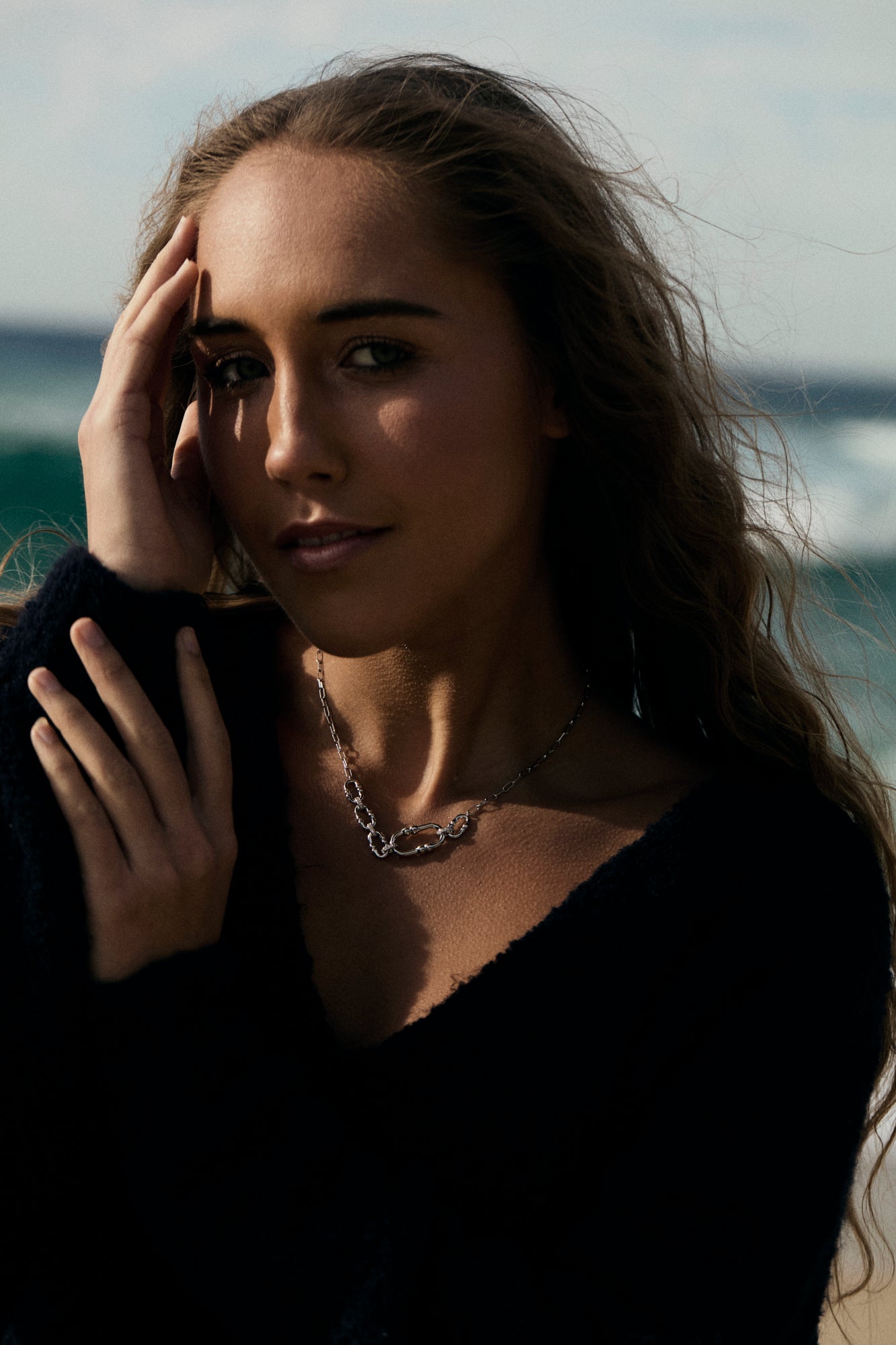 Chains, a symbol of strength. Interlinked and locked - an unbreakable bond between faith and self. A quiet confidence in her so strong that it will shatter the darkest of fears. She was powerful not because she wasn't scared but because she went on so strongly despite the fear. She came out victorious knowing it had been a life-time of mastery to become the woman she is today.