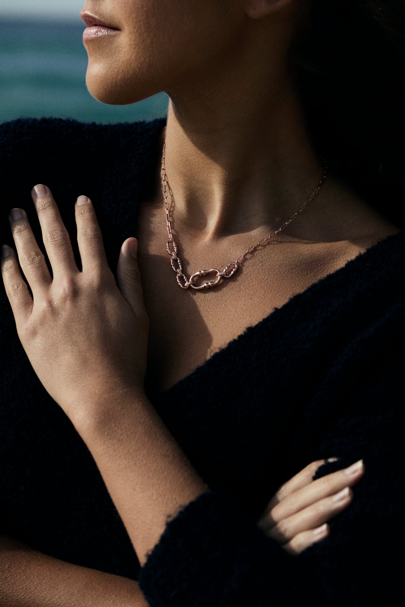 She is strong. She is bold. Her quiet strength speak volumes. The Strength White Topaz Chain Statement Necklace is a stylish stunner - with its adjustable extension, it can be transformed into a choker or wherever your neckline desires.