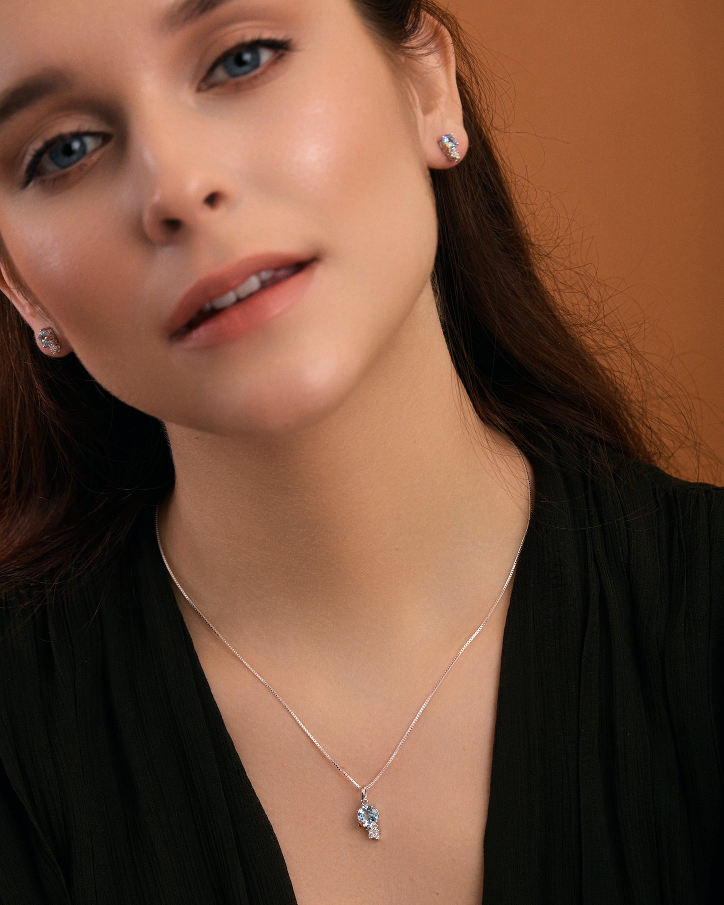 Sirius Sky Blue Topaz & White Topaz Necklace - Silver