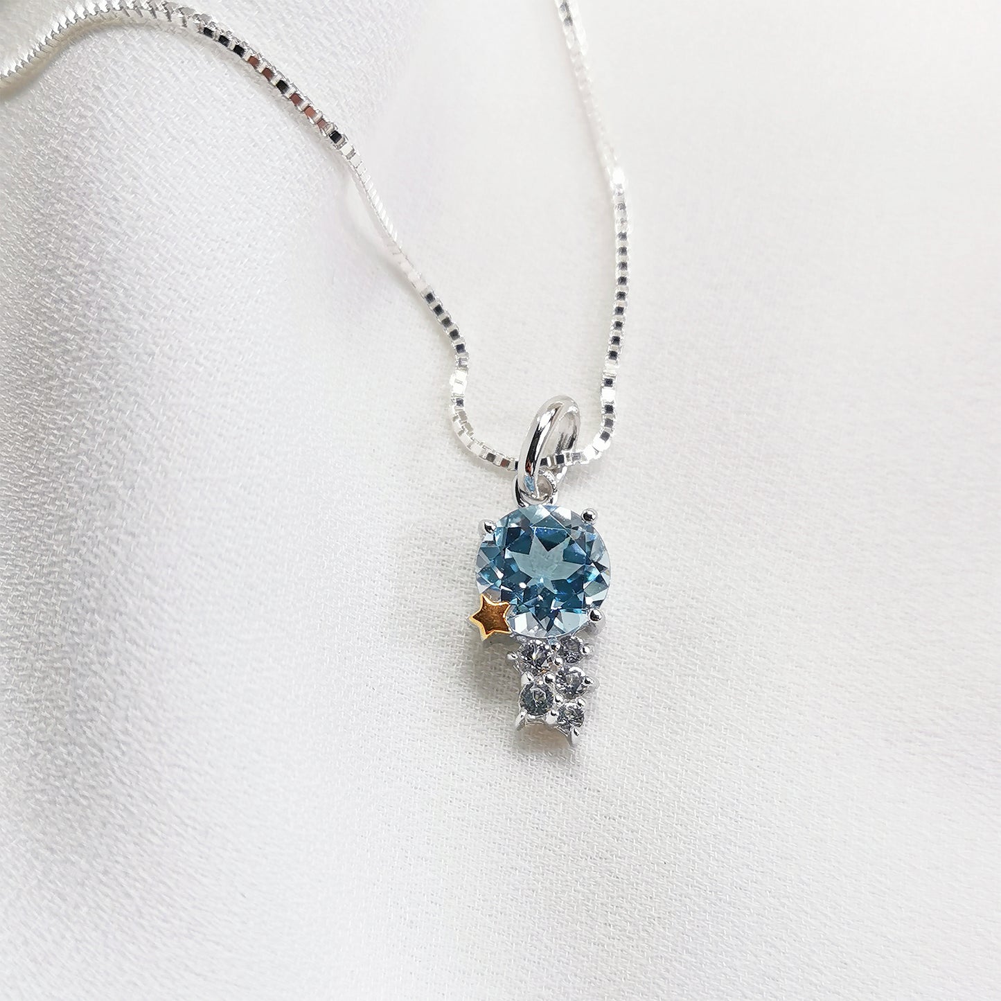 Have you made a wish upon the brightest star in the night sky? Chances are, it is Sirius you are marvelling at! Sirius - a Greek word translated as 'lit' or 'glowing', indeed lives up to its name. This beauty is a Sky Blue Topaz with White Topazes with the cutest gold star! Wear matching Sirius Earrings to complete the look!