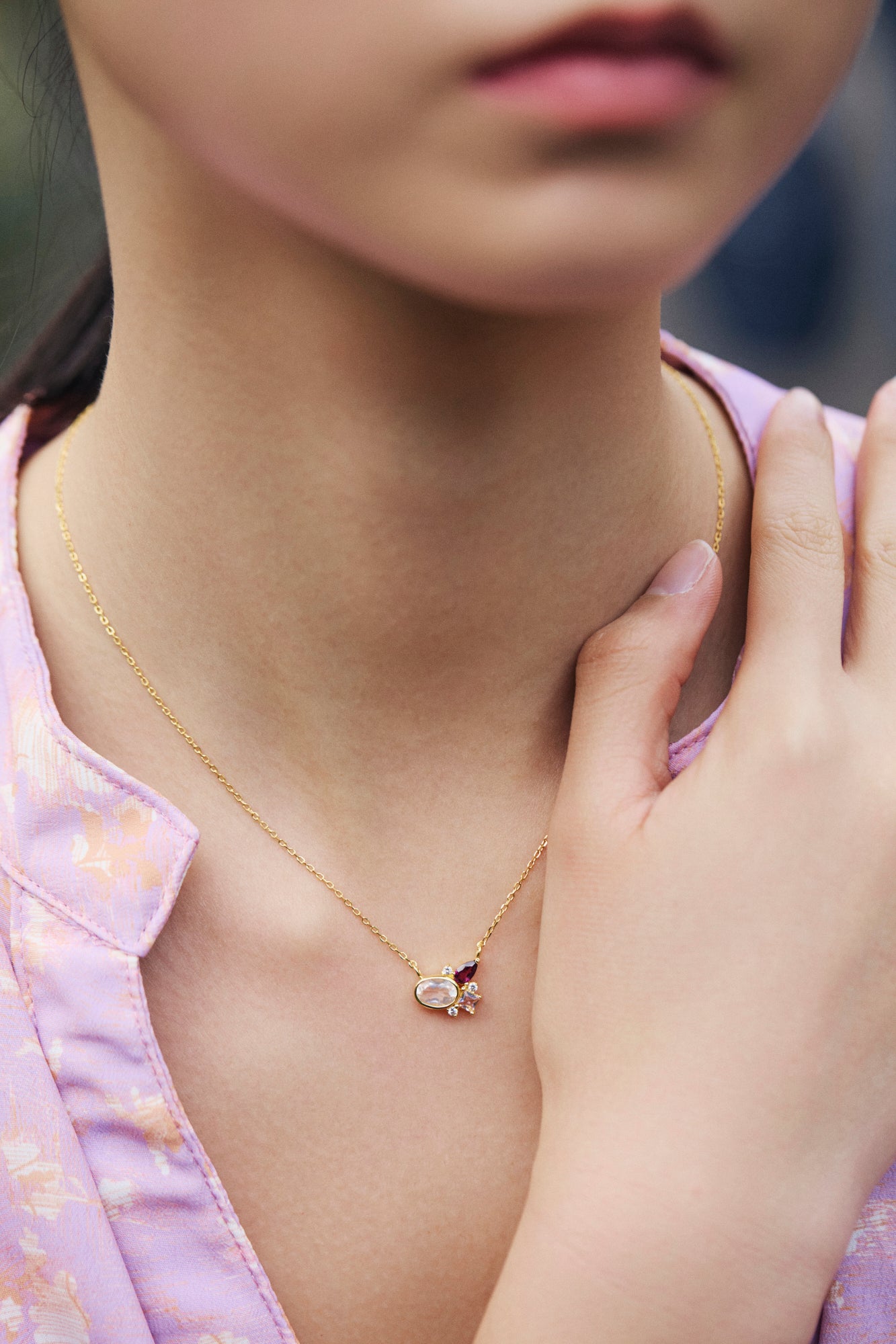 Shades of pink make up the palette of our Self-Love Necklace, illuminating soft femininity and quiet inner strength. Adorn her with your favourite dresses and take yourself out on dates and/or simply say something nice to yourself! Reconnect with yourself and ignite the spark within you!